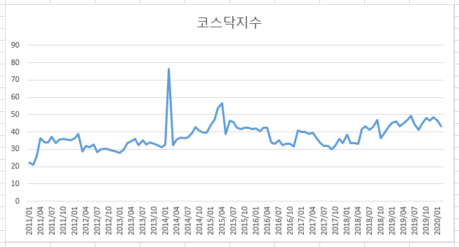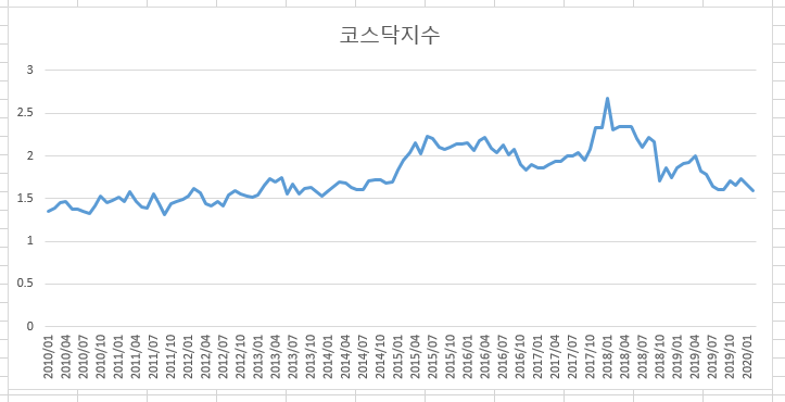 코스닥 PBR 13.88 (2020/03/17 기준)