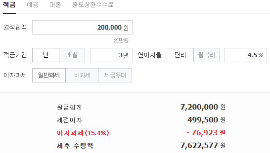 최대 가입기간은 3년이고, 금액이 20만원 한도라는 점이 조금 아쉽다.