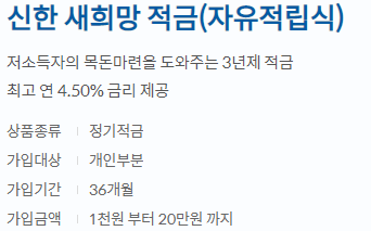 다섯번째로 보유중인 적금은 신한은행의 새희망적금이다.