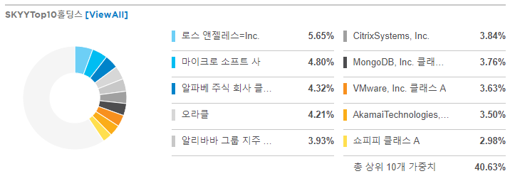 SKYY는 클라우드 컴퓨팅 주식에 대한 노출을 제공합니다. 이 지수는 3개 그룹 중 하나로 분류되는 모든 주식을 정의합니다. 서비스로서의 인프라(IaaS), 서비스로서의 플랫폼(PlatformasaService)및 서비스로서의 소프트웨어(SoftwareasaService). 색인에는 추가 화면이 적용되지 않으며, 공간 내에서 "당첨자를 선택" 하려고 하지 않습니다. 인덱스는 이러한 그룹에 각각 3,2,1의 점수를 할당합니다. 주식은 둘 이상의 할당을 받을 수 있습니다. 지수에 포함된 주식의 가중치는 점수를 모든 점수의 합으로 나눈 값이다. 따라서 이 지수는 클라우드 컴퓨팅 인프라의 주식에 기울게 됩니다. 기업 규모(시장 상한선)는 가중치에 직접적인 영향을 미치지 않는다. 이 펀드는 2019년 6월 24일 ISECTA클라우드 컴퓨팅 지수를 추적하기 시작했지만 이는 우주에서 처음 있는 일이 아닙니다. SKYY는 2011년에 클라우드 컴퓨팅 ETF중 첫번째로 출시되었습니다.