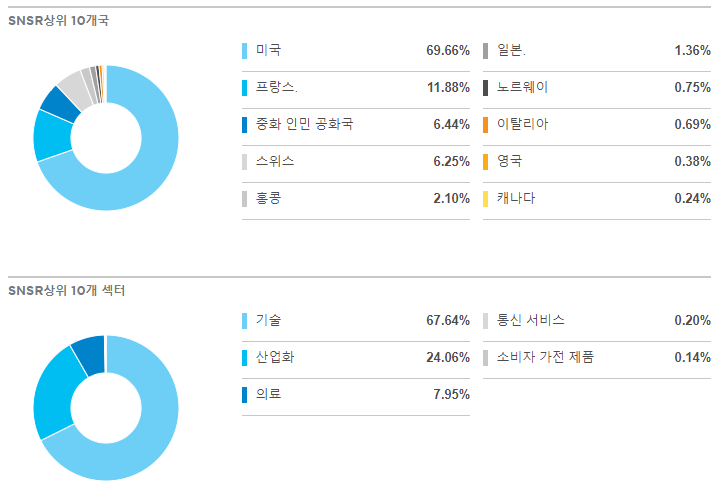 SNSR은 사물 인터넷(InternetofThings)산업에 관여하는 선진 시장 회사에 노출될 수 있도록 하여 데이터를 주고받을 수 있게 하는 일상적인 물체의 개발이다. 이 산업에는 웨어러블 기술, 홈 오토메이션, 커넥티드 자동차 기술, 센서, 네트워킹 인프라, 스마트 계량 및 에너지 제어 장치를 제공하는 기업이 포함된다. 인덱스에 대해 최소 20개의 주식이 선택되어 있습니다. 이러한 카테고리에 노출된 회사는 주어진 보유량에 대해 최대 6%, 최소 3%의 시장 상한선에 따라 가중된다. 이 주제 노출의 경우, SNSR은 상당한 비용 비율을 부과한다.