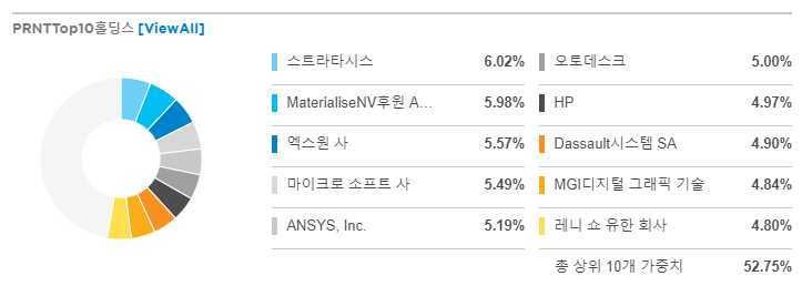 PRNT는 3D프린팅과 3D프린팅 관련 사업에 직접 관여하는 주식들로 구성된 계층화된 동등 가중치 지수를 추적합니다.