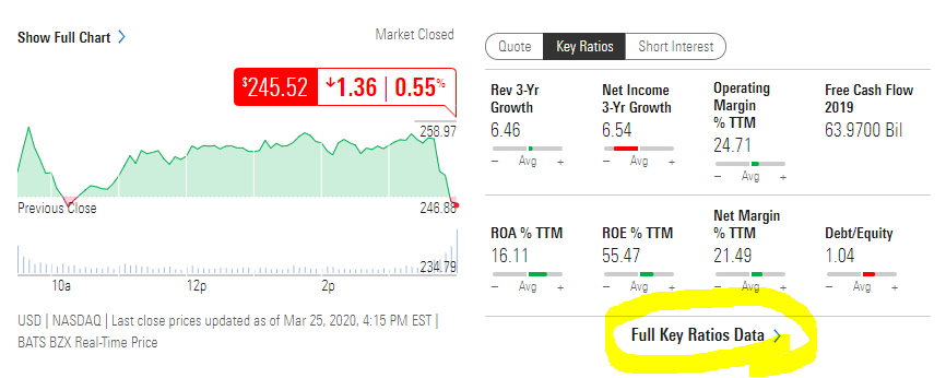 3. Key ratios를 클릭하면 아래 Full Key Ratios Data가 활성화됩니다. 이 글자를 클릭해줍니다.