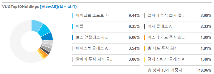 VUG는 CRSPUS Large Cap Growth Index를 추적하며, 이 지수는 성장 특성이 있는 대형 및 중형 주식을 선택합니다. 그 지수는 6개의 성장 요인을 바탕으로 주식을 선택한다.
