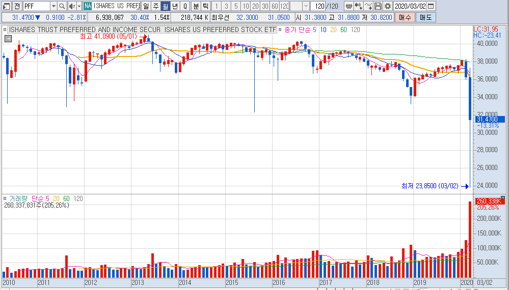 PFF는 다양한 포트폴리오를 제공하면서 신용 등급에 관계 없이 선호 증권을 대상으로 합니다. 그 펀드의 주식은 금융 기관이 그 주식을 지배한다는 점에서 시장의 성격을 반영한다. PFF는 이 부문에서 가장 저렴한 펀드는 아니지만, 지수를 상당히 잘 추적하고 있습니다. 게다가, 이 펀드는 화면 상의 유동성이 강하고 스프레드가 단단하기 때문에 모든 비용이 동료 ETF와 경쟁력이 있다. PFF는 특히 강력한 블록 유동성을 두드러지게 하여 대형 증권 거래자들이 선택할 수 있는 자금으로 만들었습니다. 2019년 2월 1일 이전에, 그 펀드는 S&P의 비슷한 지수를 추적했다.