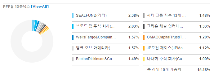 PFF는 뉴욕 증권 거래소와 나스닥에서 거래된 우선주 지수를 추적합니다. 증권은 규칙 기반의 독점적인 방법에 의해 선택되고 시장 가치에 따라 가중치가 부여된다.