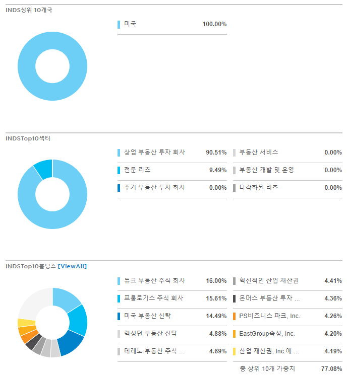 INDS는 산업용 부동산 활동에서 수익의 적어도 85%를 얻는 미국 목록의 부동산 증권 지수를 추적한다.