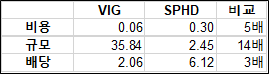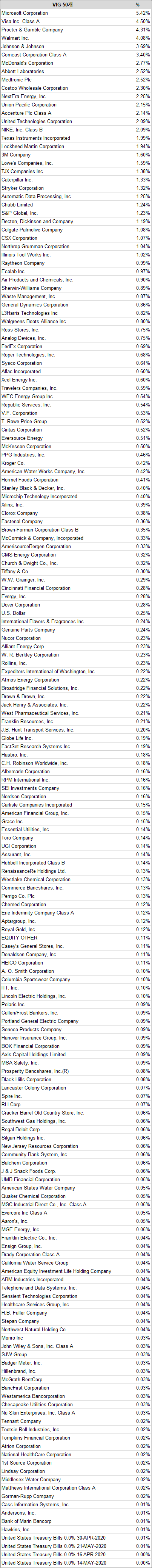 VIG는 10년 이상 연속으로 연간 배당금을 인상한 미국 기업들의 시장 지수를 추적한다.
